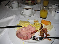 First things first, breakfast out on the lobby terrace which will include Melia's delicious cafe latte (MMM, so yummy). Then dress, pack and let's meet in the lobby before 7:45 a.m. Don't worry, we saved you a seat! And don't rush, the bus won't be on time anyway ("Late Bus?! ... No Problem" ha-ha). Oh, how I love this carefree, relaxed lifestyle.